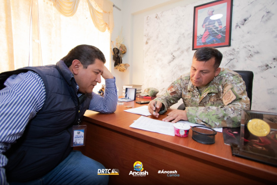 La Dirección Regional de Transportes y Comunicaciones de Áncash (DRTC) llevó a cabo una importante reunión de coordinación con el representante del Batallón de Ingeniería de Combate Motorizado “Caraz” N.° 32 del Ejército del Perú, con el propósito de definir acciones preliminares para la suscripción de un convenio interinstitucional que establezca una alianza estratégica orientada a la habilitación de nueva infraestructura vial./ El encuentro fue presidido por el director regional de la DRTC, Fredy Álvaro Tarazona, y contó con la participación del Oficial de Ingeniería del Ejército del Perú, quienes dialogaron sobre los mecanismos que permitirán concretar la firma de un futuro convenio que contribuyan al mejoramiento y mantenimiento de la infraestructura vial./ La DRTC reafirma su compromiso con la articulación de esfuerzos entre instituciones públicas para impulsar el progreso y bienestar de la población ancashina, promoviendo una gestión eficiente, transparente y orientada a resultados en materia de infraestructura vial.